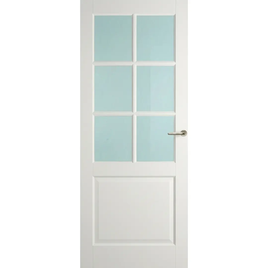 Breng licht en ruimte in uw interieur met binnendeuren voorzien van glas. U kunt kiezen uit verschillende glastypes, zoals rookglas voor een donkere, trendy look, satijnglas voor privacy, blank glas voor een helder effect, brons glas voor een warme uitstraling of facetglas voor een klassieke touch.