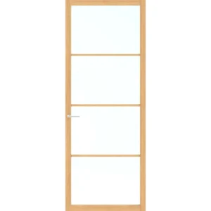 De Skantrae SSL 14804 binnendeur heeft een modern design met een houten frame en glazen panelen, ideaal voor ruimtes die baat hebben bij meer licht en privacy.