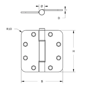 DX Glijlagerscharnier ronde hoeken 3 mm 89×89 mm SKG***® RVS geborsteld